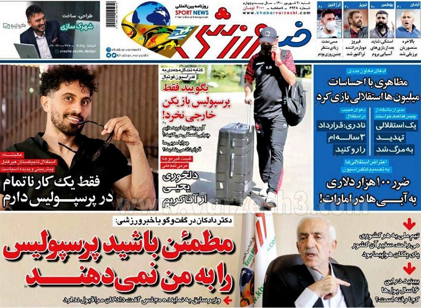 روزنامه خبر ورزشی شنبه 22 آذر 1399 ورزش سه